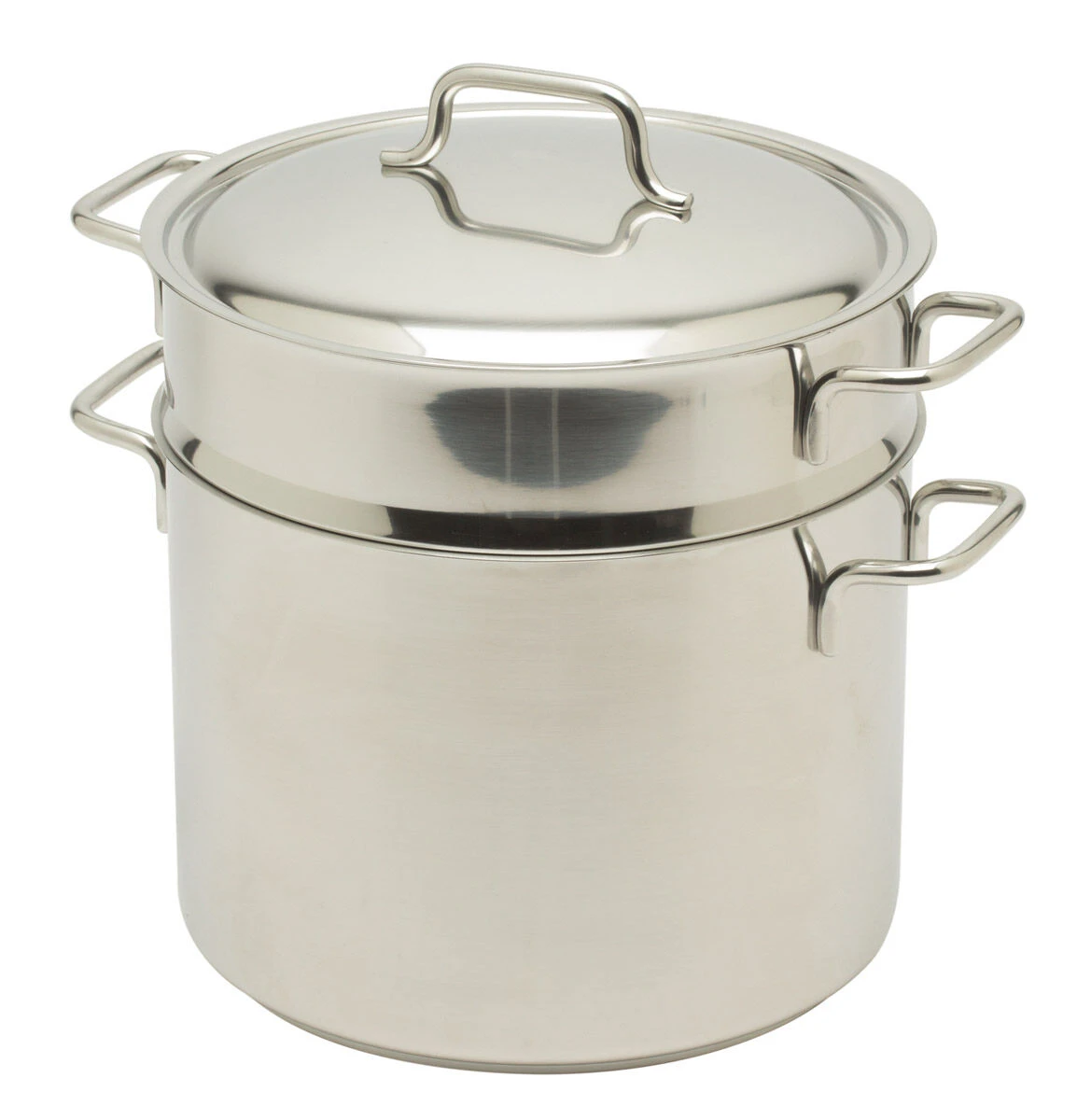 De 2-delige Demeyere Apollo pastapan bestaat uit een hoge soeppan met een diameter van 24 cm, een deksel en een passende pasta-inzet. Gebruik deze set om pasta in ruim water te koken en daarna gemakkelijk uit te laten lekken terwijl u het water uit de pan wegschenkt. Ook geschikt om groenten te blancheren.