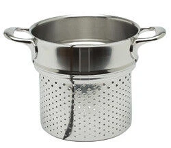 De pasta-inzet van Demeyere Atlantis heeft een diameter van 24 cm. De pasta-inzet is te gebruiken met de Demeyere Atlantis hoge kookpan met een diameter van 24 cm. Het gebruik van een pasta-inzet maakt het afgieten van pasta zeer eenvoudig. Daarnaast is de pasta-inzet ook zeer geschikt voor het koken en blancheren van groenten of aardappelen.
