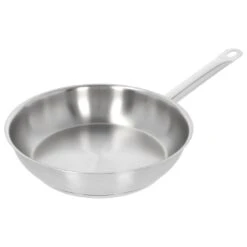 Het pannetje presenteert mooi aan tafel, zonder veel plek in te nemen. De buitenkant en de stevige, gelaste greep zijn blinkend gepolijst.
