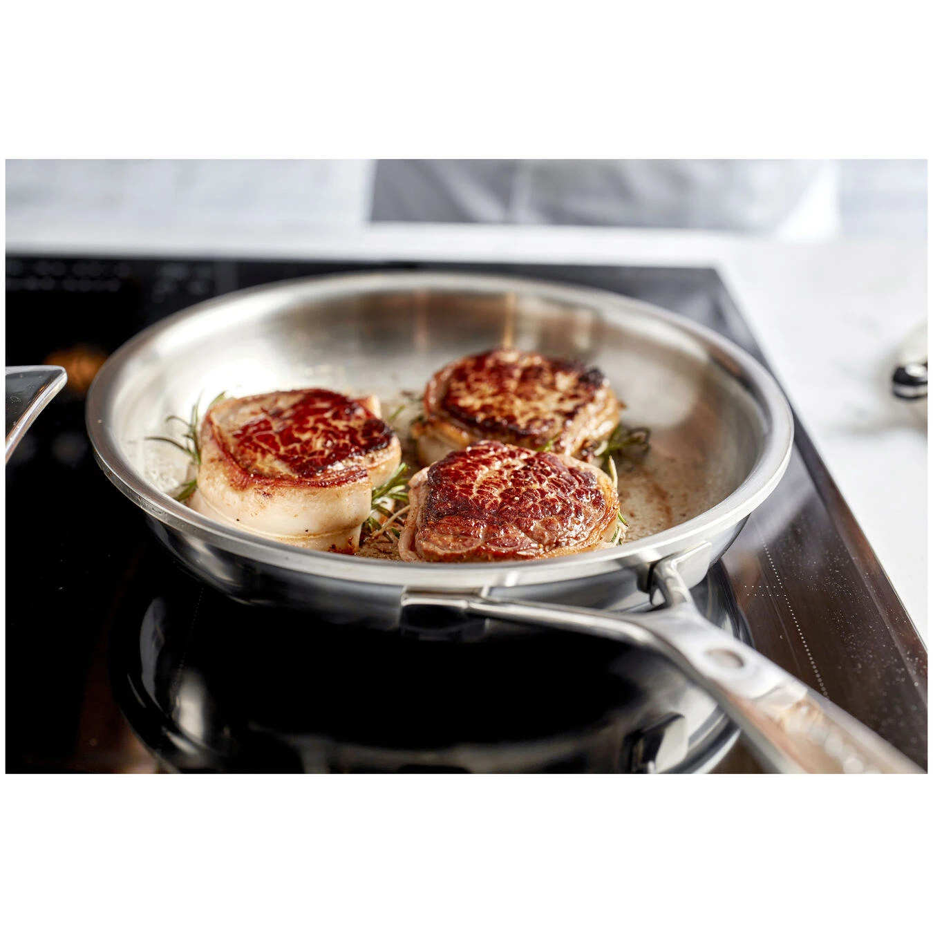 Een verfijnd stukje wild, een flinke dorade of een eendenfilet bakken? Met deze Silver 7 koekenpan van 24 cm doe je je favoriete vlees, gevogelte en vis alle eer aan. Als basis voor een passende saus kun je de kleine aanbaksels deglaceren. Ook aardappeltjes geef je in een handomdraai een heerlijk krokant jasje, in een mix van boter en olijfolie. Deze pan presteert geweldig op alle fornuizen en is niet te kloppen op inductie.
