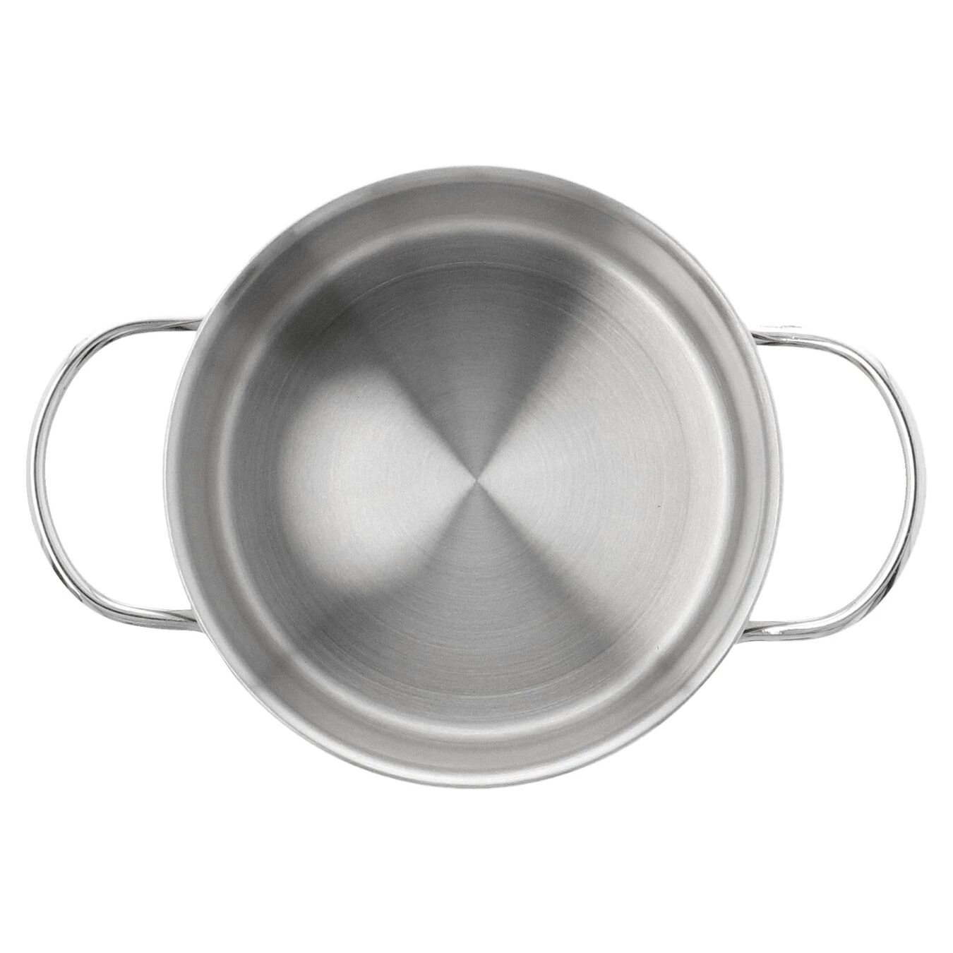 Hier heb je jarenlang plezier van. Deze degelijke miniset is ook handig voor in de mobilhome of caravan, of op kot. Dankzij dit roestvrijstalen viertal met doorsnedes van 12 en 14 cm heb je weinig kastruimte nodig om toch met degelijk materiaal aan de slag te kunnen. De kookpanten en soeppan hebben een mooi blinkend deksel, het steelpannetje is zonder deksel.